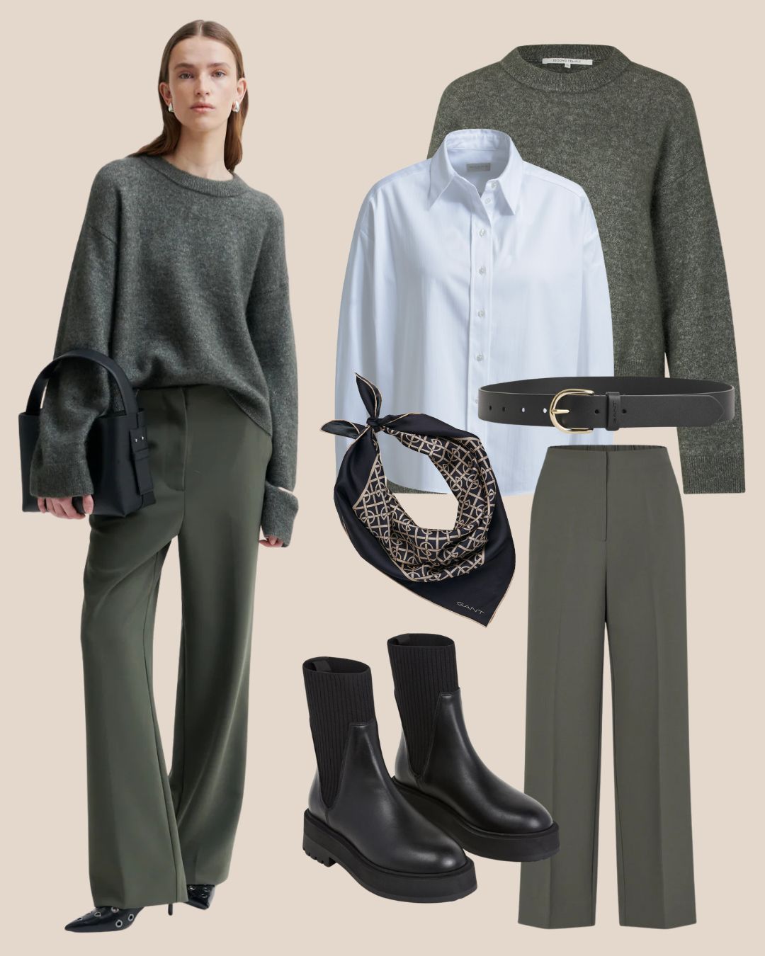 Hyvin istuvat housut ovat asukokonaisuuden ankkuri. Ne antavat asulle ryhtiä ja tekevät lookista heti huolitellun – vaikka muu kokonaisuus olisi kuinka rento. Mustat suorat housut toimivat täydellisesti bleiserin kanssa tai neuleen parina vapaa-ajalla. Klassiset siniset farkut puolestaan tuovat ajatonta rentoutta ja helppoutta kerrospukeutumiseen.