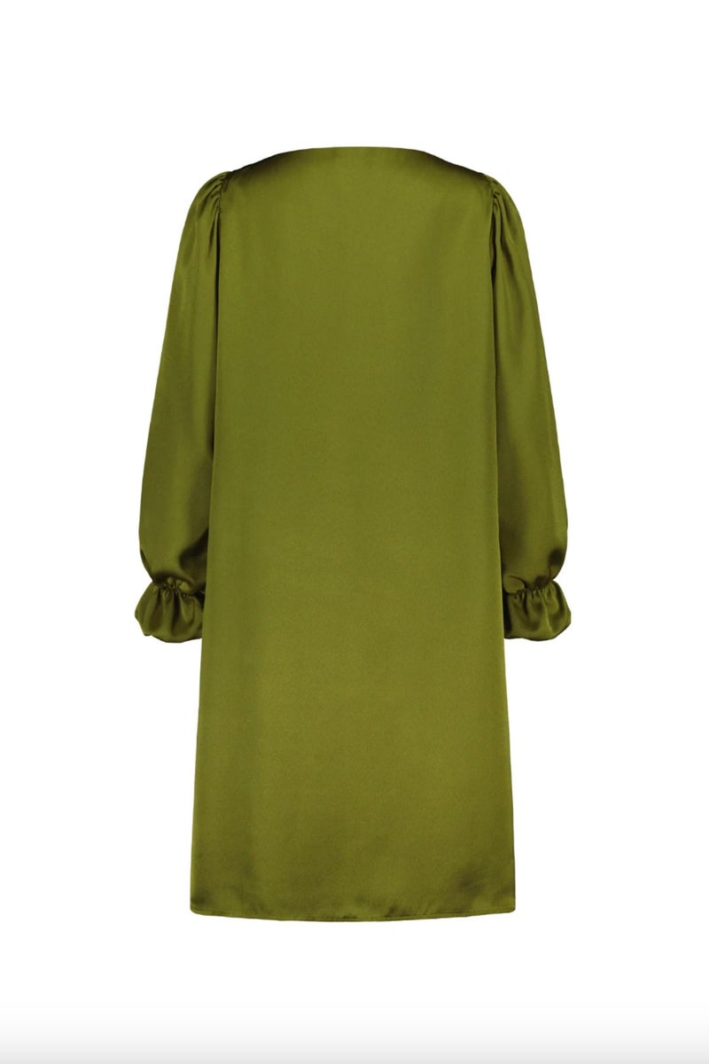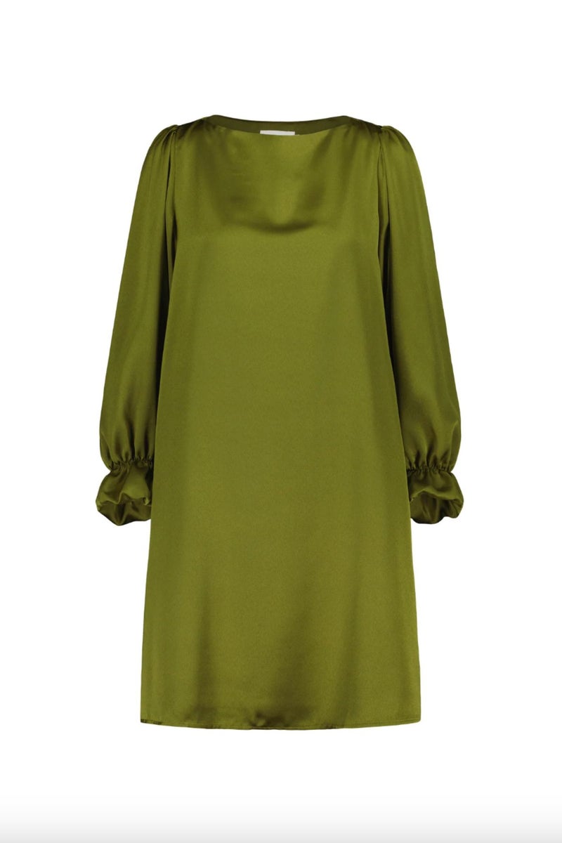 KATRI NISKANEN Emma Dress on täydellinen valinta, kun etsit ajattoman tyylikästä ja monikäyttöistä mekkoa. Juhlamekossa on suora ja väljä istuvuus, pyöreä pääntie ja pitkät hihat, joiden hihansuut on viimeistelty röyhelöillä. Oliivinvihreä mekko on valmistettu kevyestä satiinista, joka laskeutuu kauniisti ja liikkuu vaivattomasti mukana.