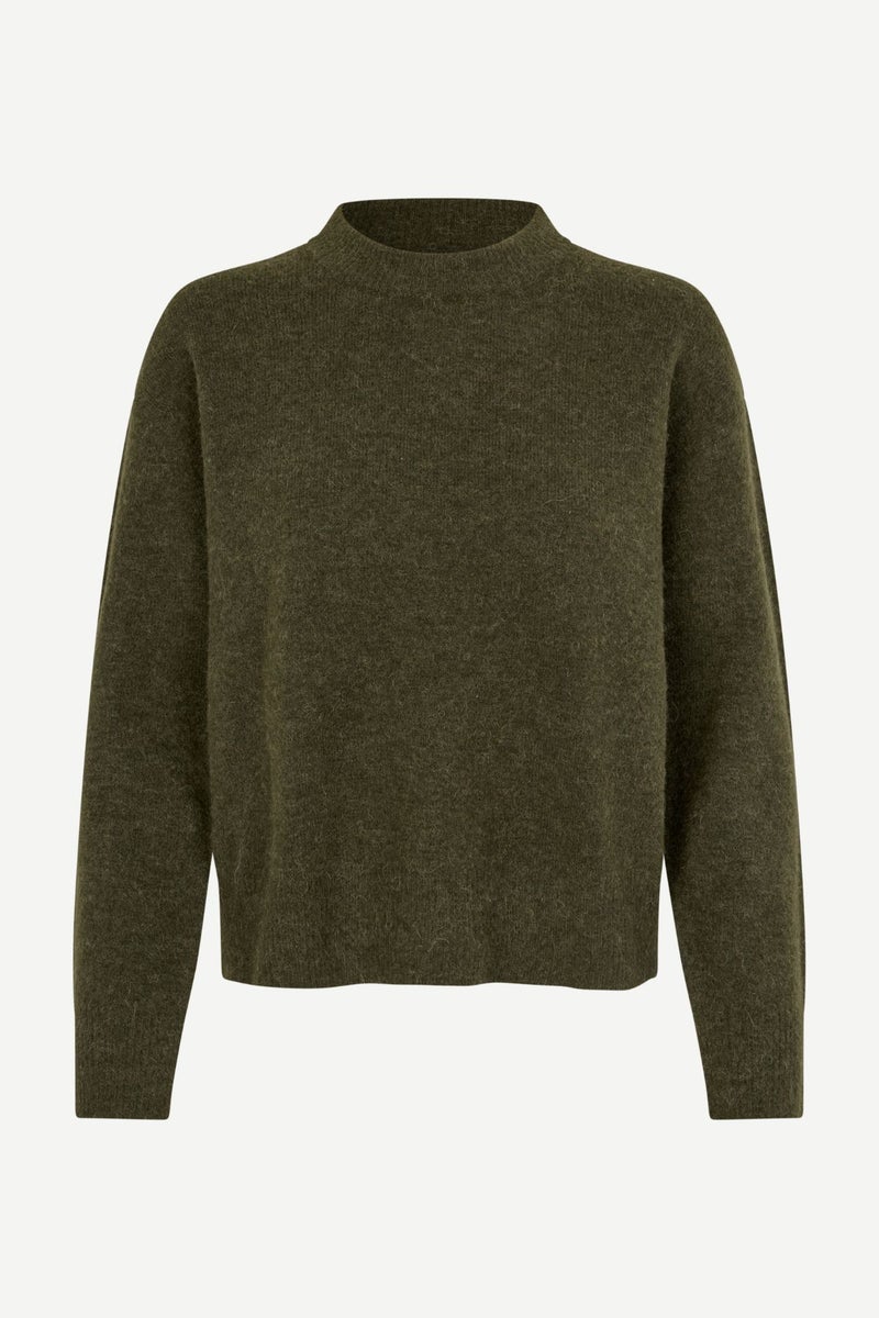 Samsoe & Samsoe Anour ON -neule on arkiklassikko, joka kulkee mukana niin toimistolla kuin viikonloppuretkilläkin. Tummanvihreässä neuleessa on pudotettu hartialinja ja pyöreä nouseva kaulus, jotka luovat rennon ja modernin ilmeen. Neule on valmistettu laadukkaasta alpakka-merinovillasekoitteesta, joka lämmittää ja tuntuu miellyttävältä iholla.
