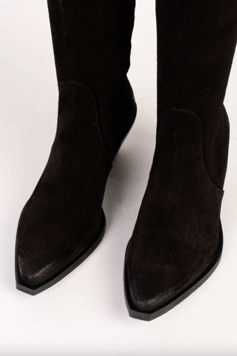 Bukela Josie saappaat ovat juuri sitä, mitä ajattoman tyylin ytimessä tarvitaan: minimalistinen muotoilu, kauniisti istuva varsi ja siluettia pidentävä terävä kärki. Bukelan mustat saappaat on valmistettu laadukkaasta mokkanahasta, ja niissä on kestävät thunit-kumipohjat.