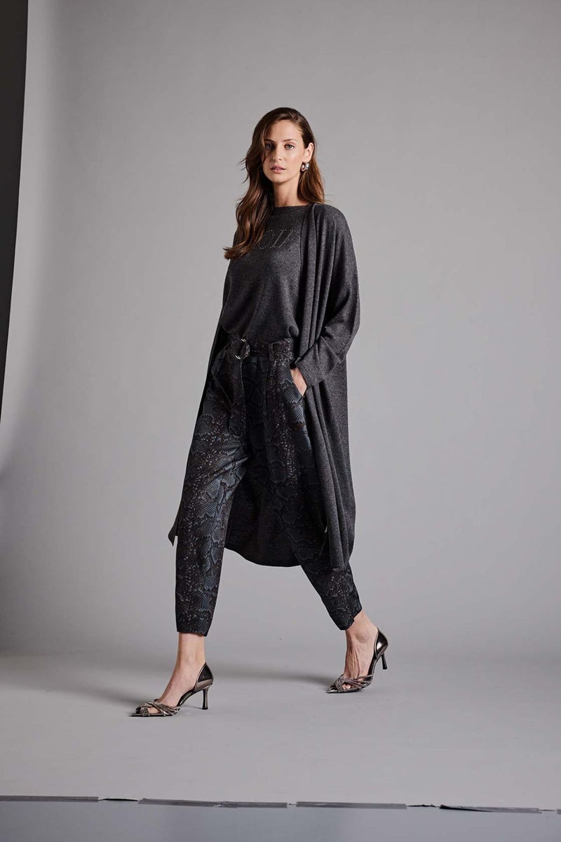 Catnoirin pitkä neuletakki on valmistettu pehmeästä ja lämpimästä villasekoitteesta. Regular fit -leikkauksen ansiosta neuletakki laskeutuu kauniisti ja sopii monenlaisiin asukokonaisuuksiin. Tyylikäs tummanharmaa sävy tuo syvyyttä ja toimii hyvin kerrospukeutumisessa.