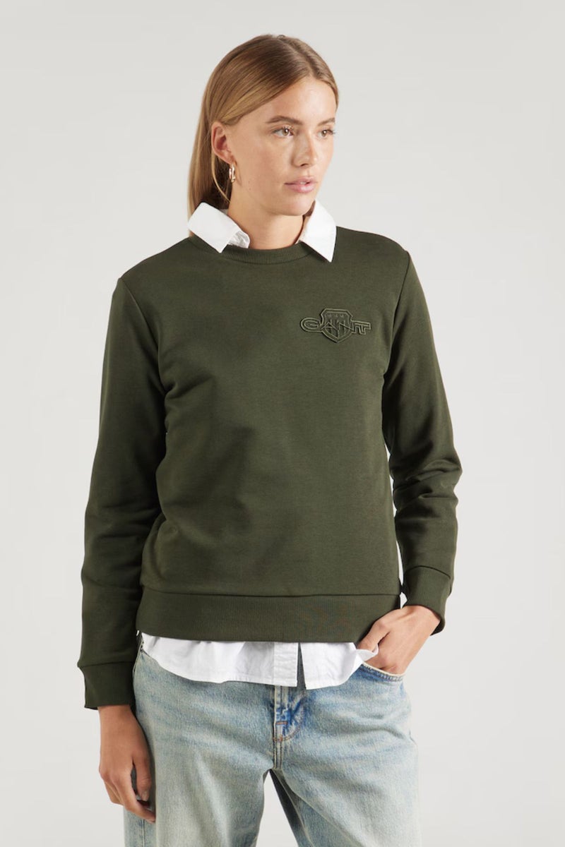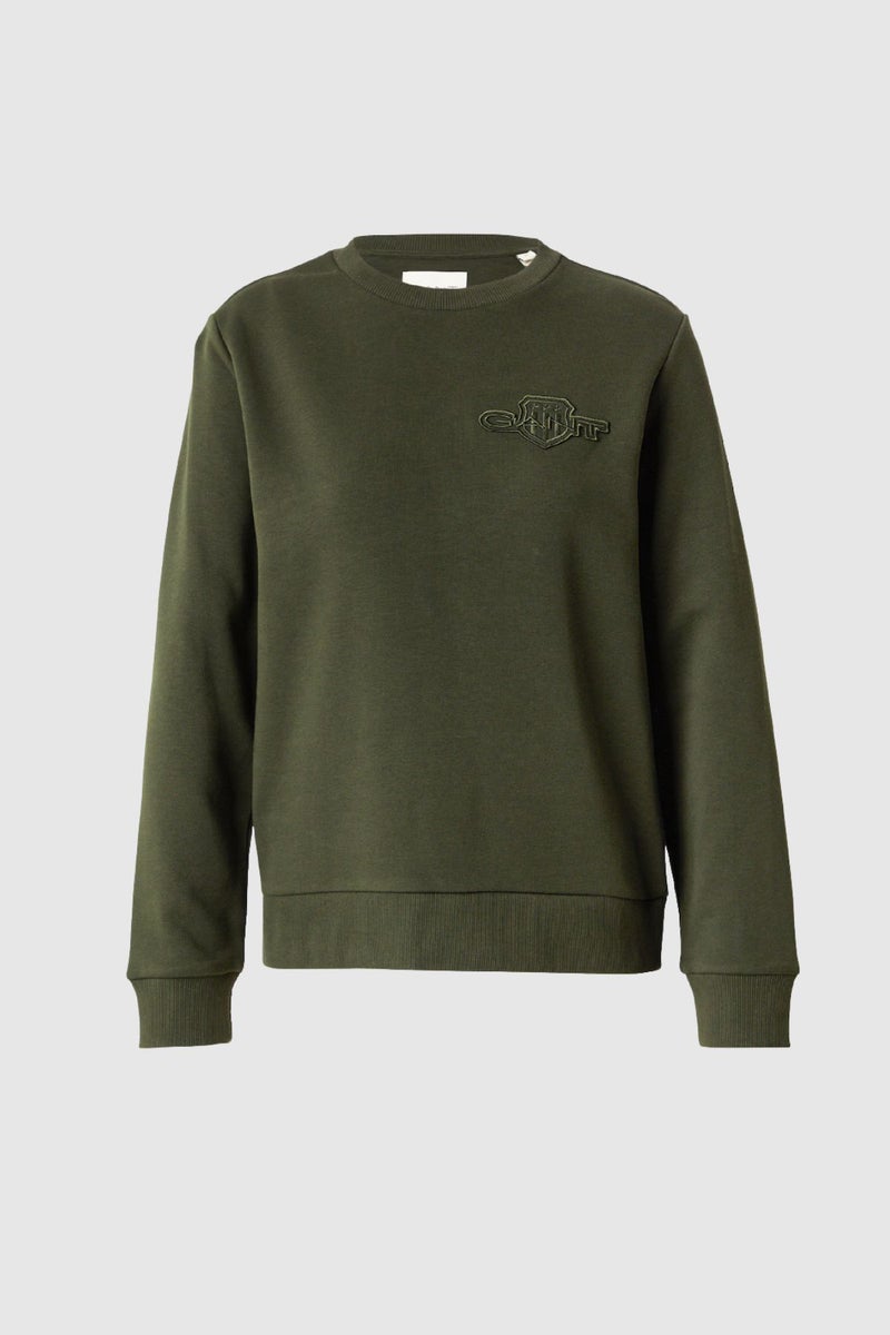 Gantin vihreä collegepaita on valmistettu pehmeästä puuvillasekoitteesta, jossa on mukana kierrätettyä polyesteriä. Collegepaidassa on hillitty, sävy sävyyn sopiva logo rinnassa. Perinteinen pyöreä pääntie ja regular fit -istuvuus tekevät collegepaidasta monikäyttöisen valinnan arkeen ja vapaa-aikaan.