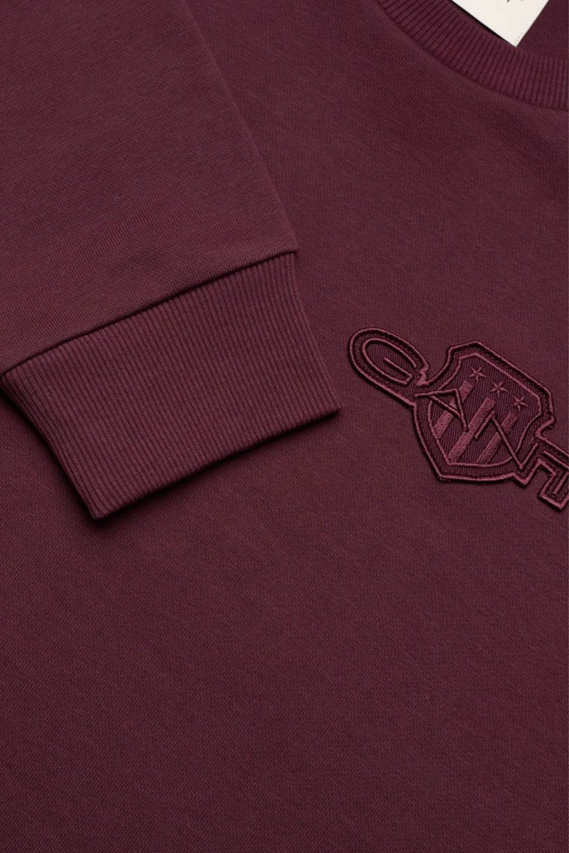 Gantin viininpunainen collegepaita on valmistettu pehmeästä puuvillasekoitteesta, jossa on mukana kierrätettyä polyesteriä. Collegepaidassa on hillitty, sävy sävyyn sopiva logo rinnassa. Perinteinen pyöreä pääntie ja regular fit -istuvuus tekevät collegepaidasta monikäyttöisen valinnan arkeen ja vapaa-aikaan.