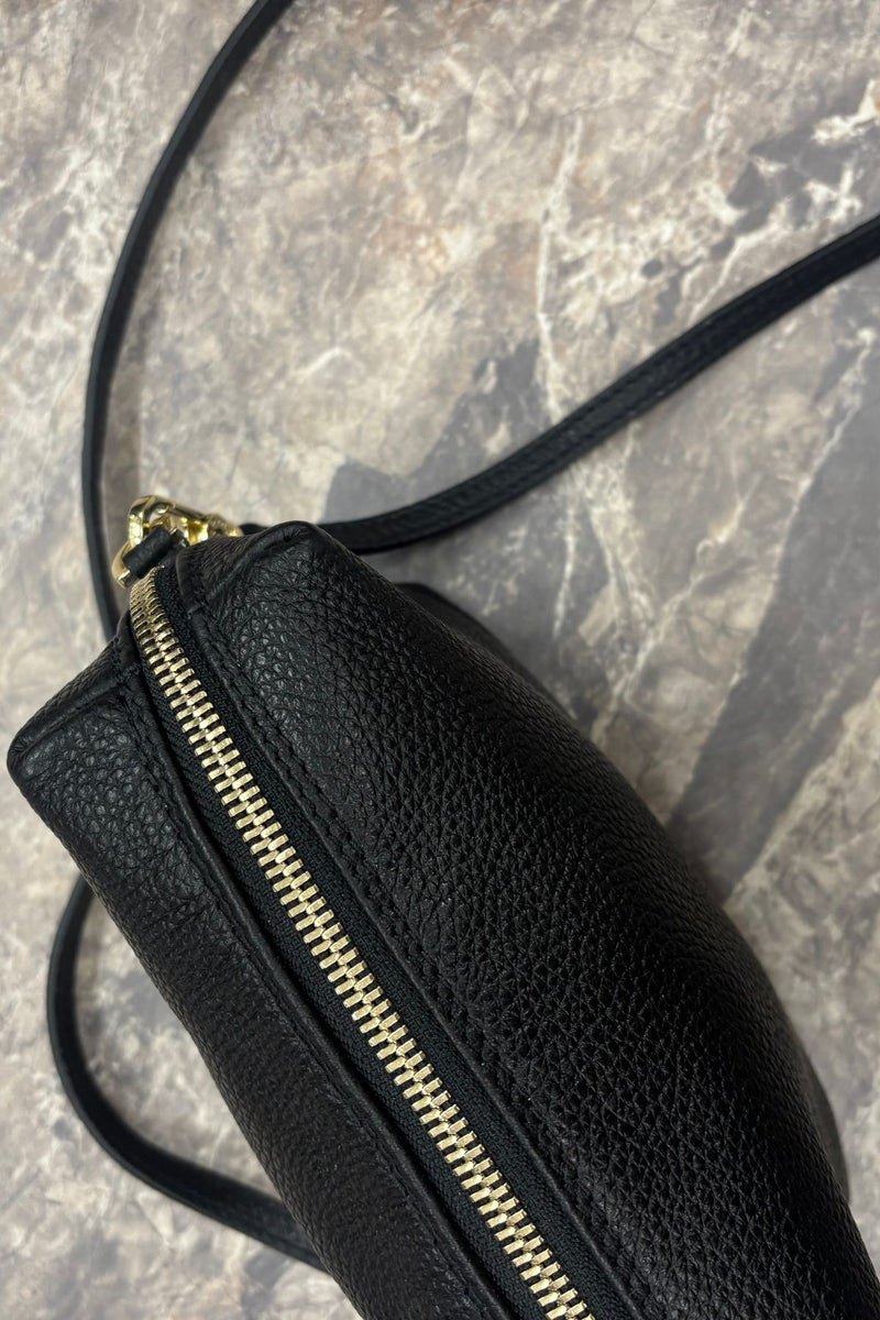Abron musta olkalaukku on valmistettu laadukkaasta pintanahasta. Laukussa on kompakti päälokero, joka sulkeutuu kätevästi vetoketjulla. Sisäpuolella on lokerot ja vetoketjullinen sisätasku, jossa tavarasi säilyvät näppärästi järjestyksessä. Laukussa on irrotettava ja säädettävä olkahihna, jonka avulla muokkaat laukusta aina tilanteeseen ja tarpeeseesi sopivan.