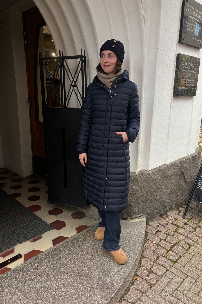 Parajumpers Magalie untuvatakissa on pitkä helma ja tyköistuva malli, mikä luo naisellisen siluetin ja näyttää upealta kaupunkikuvassa. Untuvatakki on valmistettu puolikiiltävästä, vettähylkivästä kankaasta. Pitkä untuvatakki on täytetty kevyellä, mutta lämpimällä untuvasekoitteella.
