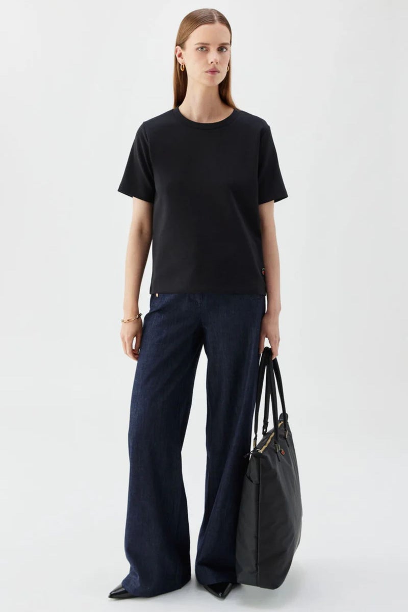 Busnel Tessa Shirt on suora ja hieman laatikkomainen t-paita, joka yhdistyy helposti vaatekaapin muiden suosikkien kanssa. T-paidassa on pyöreä pääntie, lyhyet hihat ja ikoninen Busnel-logo helman vasemmalla puolella. Pehmeä puuvillasekoite tuntuu miellyttävältä ihoa vasten.
