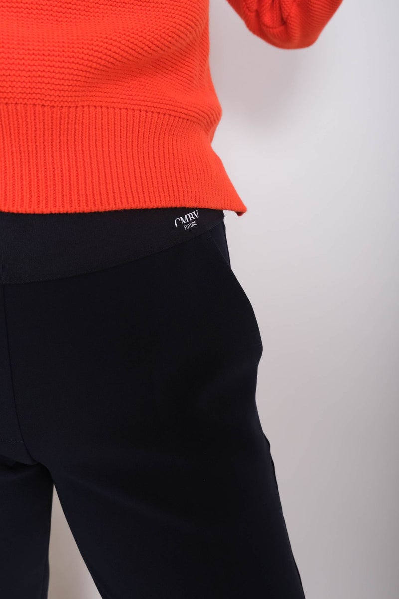 Cambio Kim housuissa on mukava kuminauhavyötärö, sivutaskut sekä koristetasku edessä. Nilkkapituus ja hillitty käänne lahkeensuussa viimeistelevät kokonaisuuden tyylikkäästi. Laadukas tekninen materiaali laskeutuu kauniisti ja tuntuu miellyttävältä ihoa vasten.