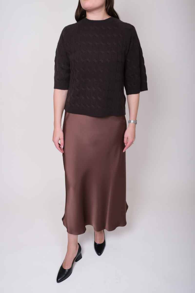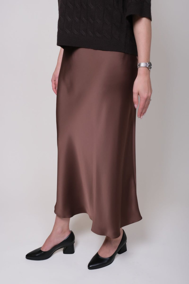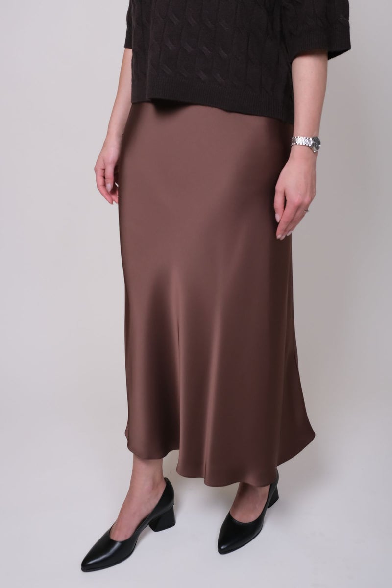 iBlues Verve satiinihame hurmaa pehmeällä kiillolla ja upealla tummanruskean sävyllä. Hameen kauniisti laskeutuva, midimittainen helma luo naisellisen ja kevyen siluetin, joka sopii yhtä hyvin arjen hetkiin kuin juhlavampiin tilaisuuksiin. Joustava vyötärönauha tuo mukavuutta ja takaa täydellisen istuvuuden.