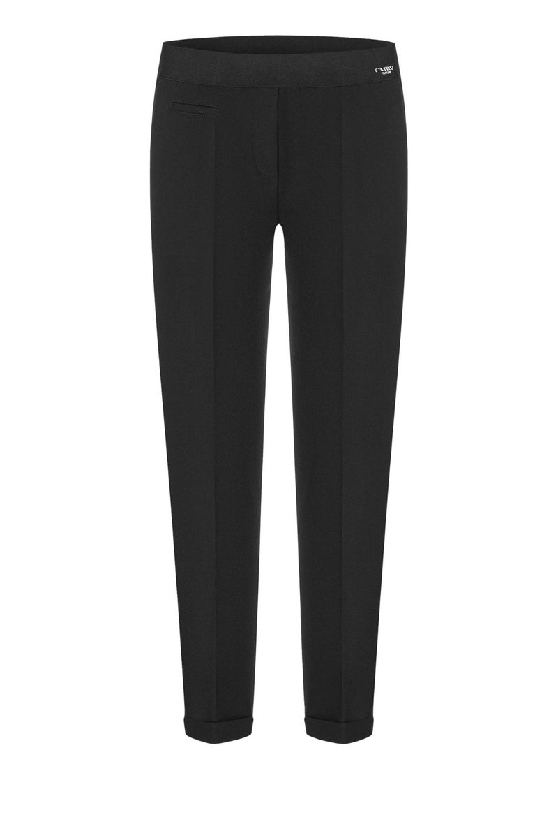 Cambio Kim housuissa on mukava kuminauhavyötärö, sivutaskut sekä koristetasku edessä. Nilkkapituus ja hillitty käänne lahkeensuussa viimeistelevät kokonaisuuden tyylikkäästi. Laadukas tekninen materiaali laskeutuu kauniisti ja tuntuu miellyttävältä ihoa vasten.