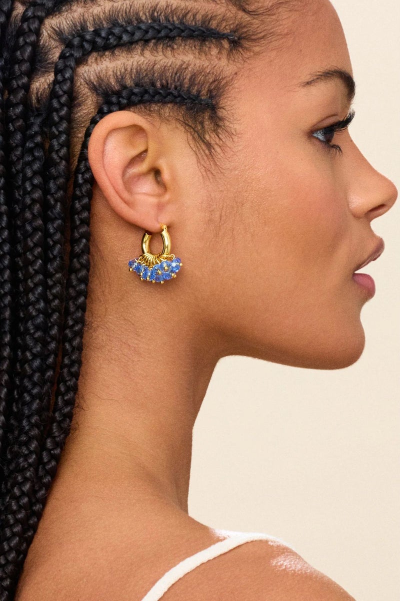 ANNELE Mini Date Night korvakorut ovat miniversio klassisesta Wavy-renkaasta. Siniset Swarovski®-kristallit ja kullatut sterling-hopearenkaat viimeistelevät korvakorujen laadukkaan ja ajattoman ilmeen.