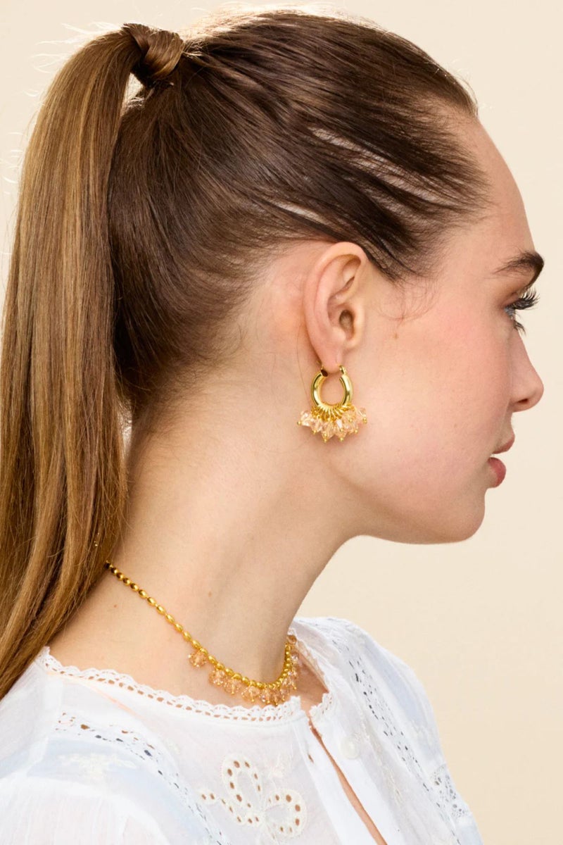 ANNELE Golden Goddess korvakorut ovat valmistettu 18k kullatusta 925 Sterling hopeasta ja lasikristalleista.
