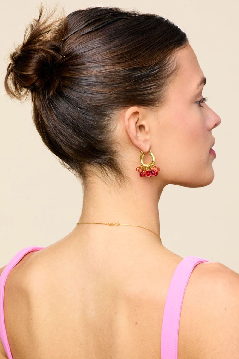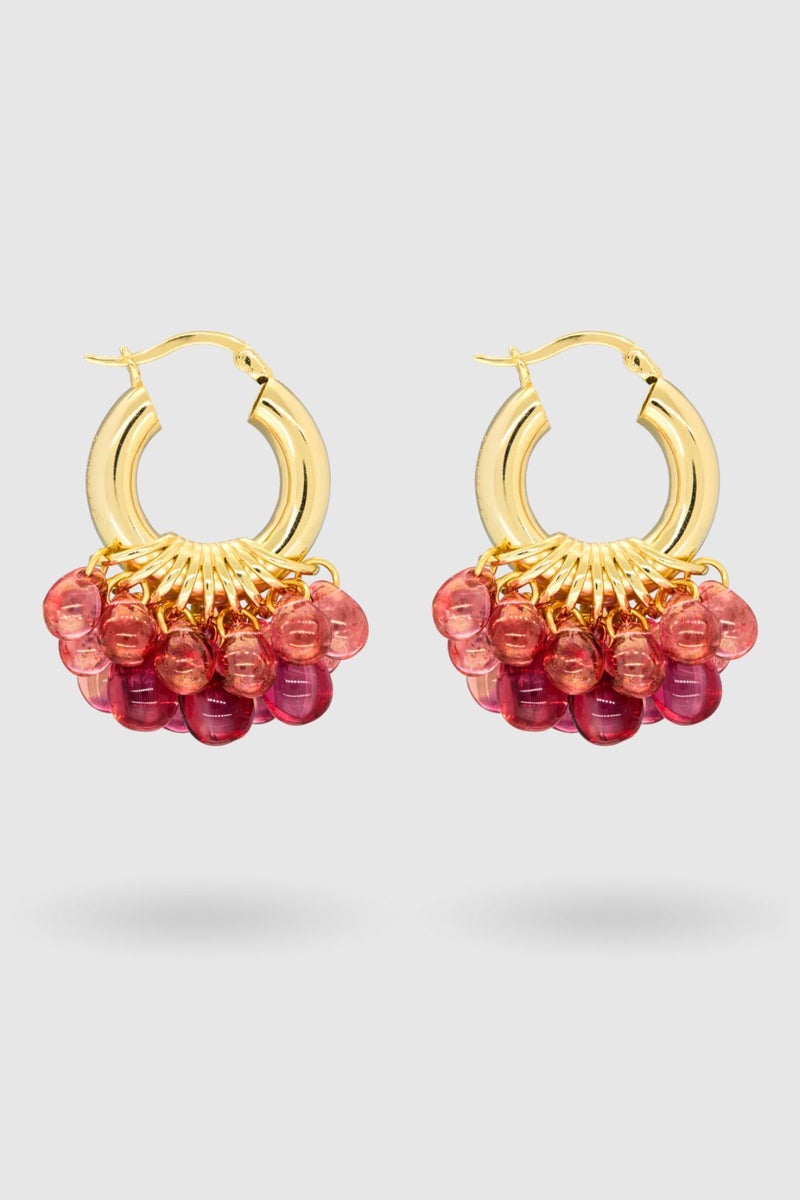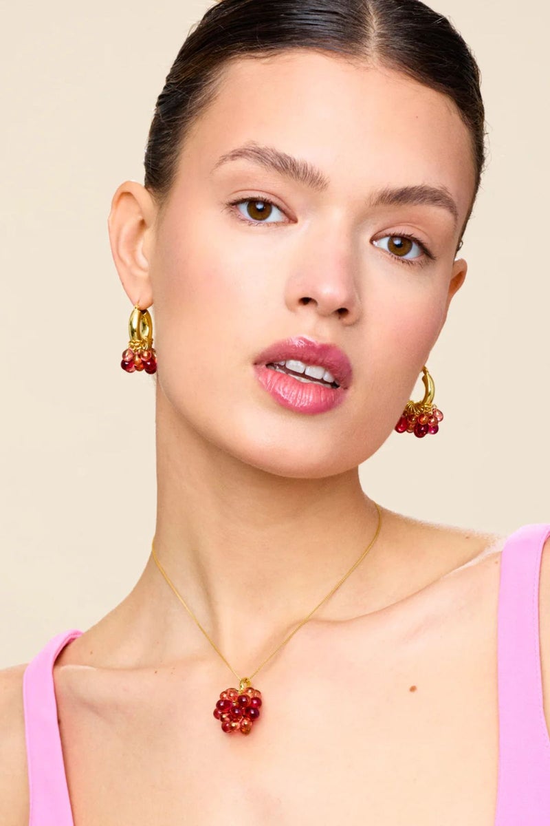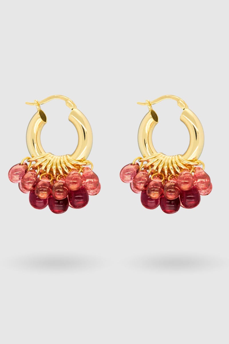 ANNELE L-O-V-E korvakorut ovat yksi brändin tunnetuimmista muodoista. Punaiset lasihelmet ja kullatut sterling-hopearenkaat viimeistelevät korvakorujen laadukkaan ja ajattoman ilmeen.