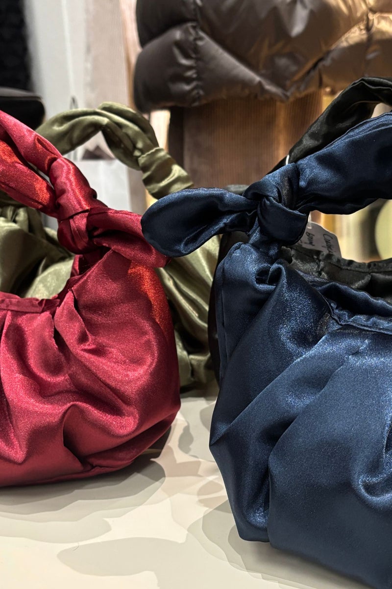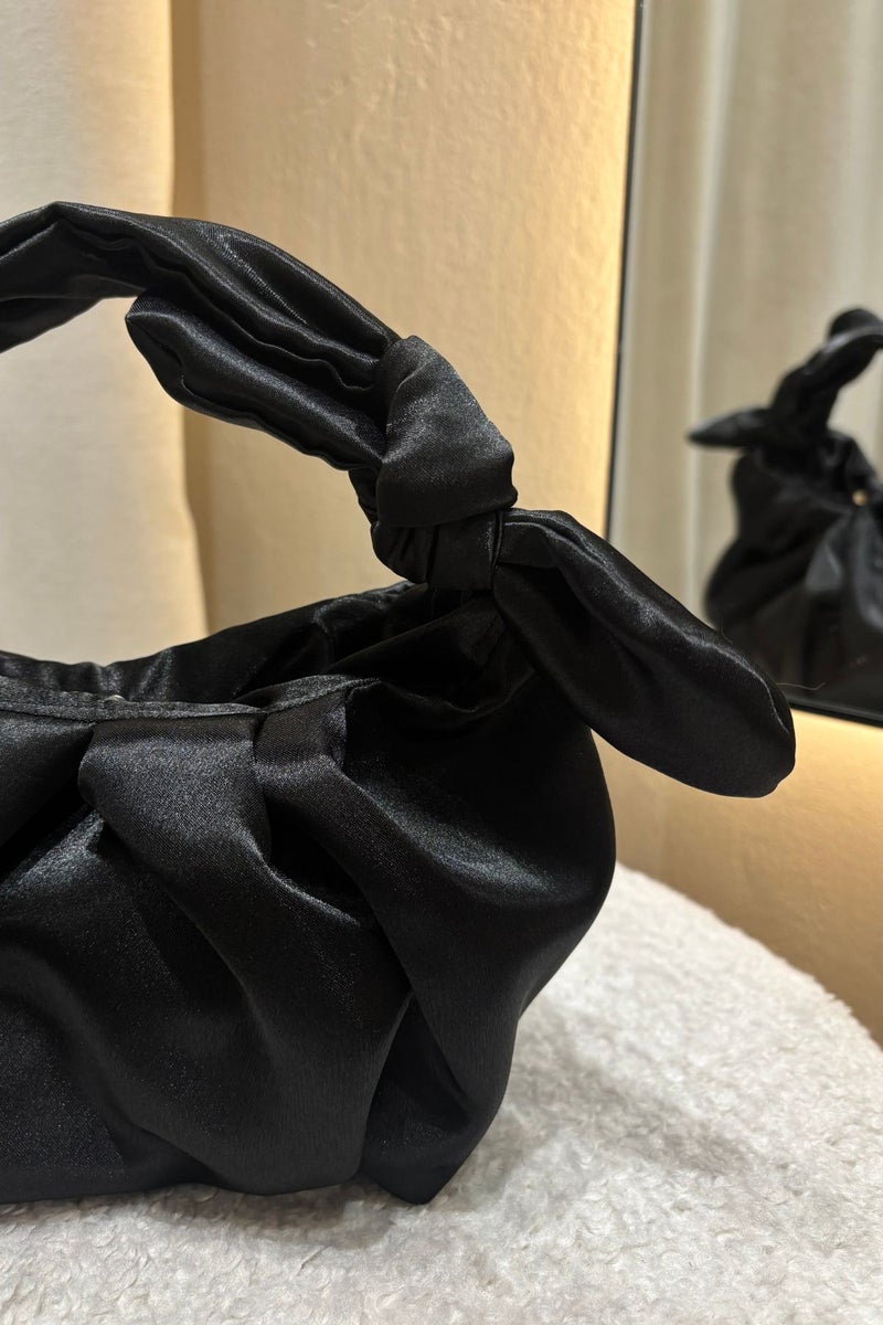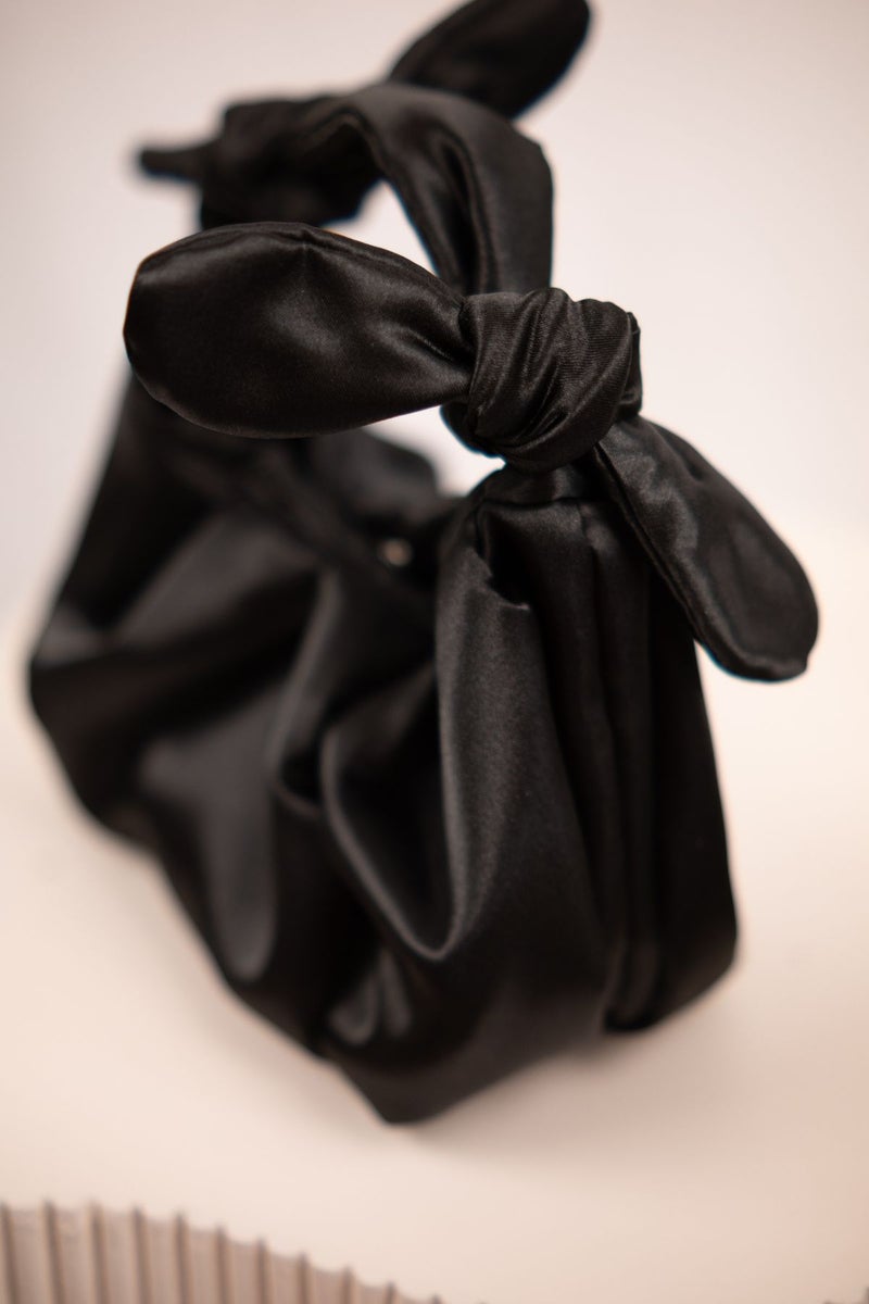 Italialaisen Crabbylabin käsintehty laukku on upea statement, joka viimeistelee juhla-asun täydellisesti. Kiiltävästä mustasta satiinista valmistetussa laukussa on kätevä magneettikiinnitys ja kantokahvat. Laukkuun mahtuu mukavasti vaikkapa puhelin, pieni lompakko ja huulikiilto.