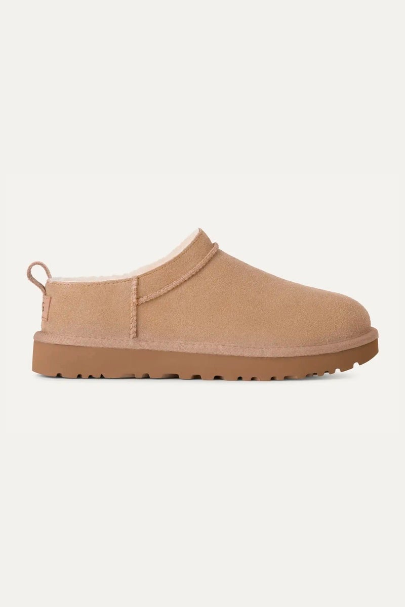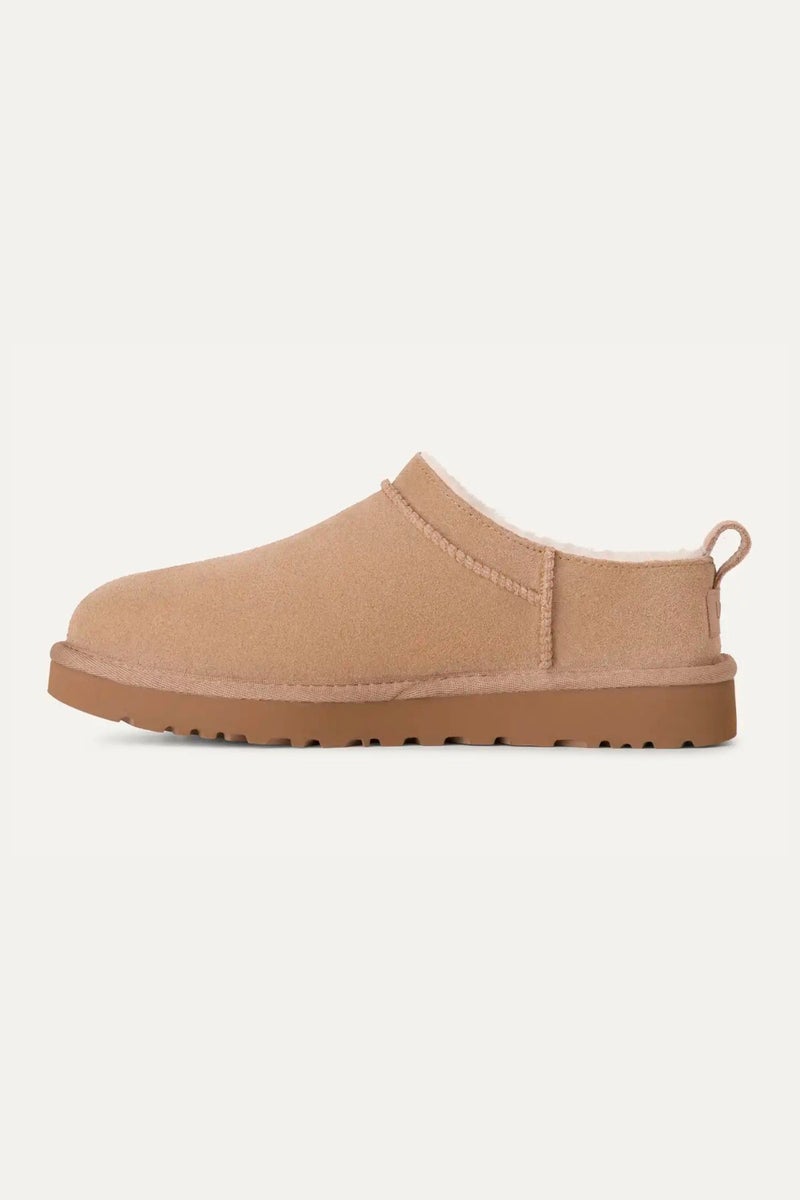 UGG Classic Micro tuo klassisen suosikkisaappaan uudelle tasolle: matalampi profiili, mutta sama ensiluokkainen pehmeys. UGG -nilkkureissa yhdistyvät ylellinen tyyli ja helppo arkikäyttö. Aito mokkanahka ja pehmeä lampaannahkavuori säätelevät luonnollisesti lämpöä, joten voit käyttää kenkiä joko sukkien kanssa tai ilman.