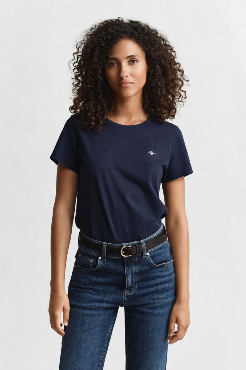 GANT Shield t-paita on valmistettu pehmeästä puuvillajerseystä. Tummansinisessä t-paidassa on rento regular fit -mitoitus ja merkille tunnusomainen pieni kirjailtu vaakunalogo rinnassa. Lyhyet hihat ja perinteinen pyöreä pääntie luovat ajattoman ilmeen, joka on helppo yhdistää monenlaisiin vaatteisiin.