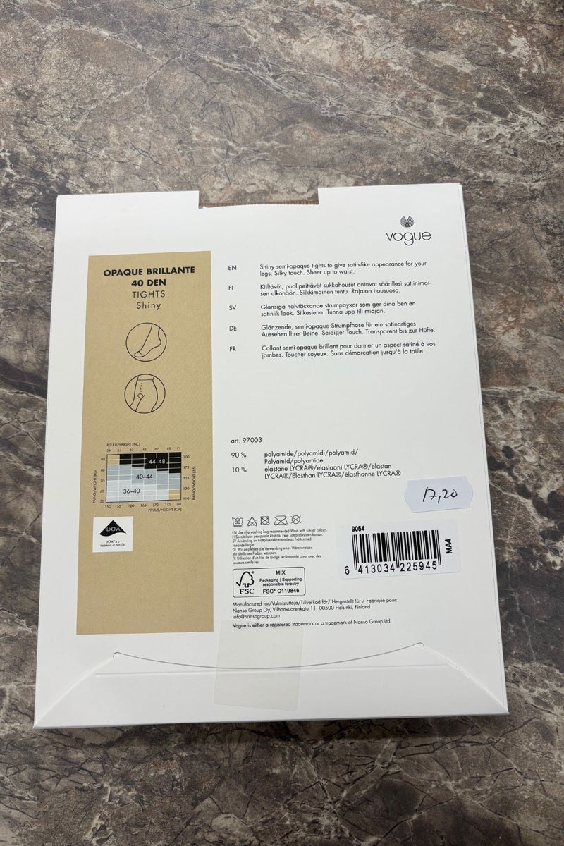 Vogue Opaque Brillante sukkahousut ovat täydelliset juhlapukeutumiseen. Silkkisen pehmeissä sukkahousuissa on tasosauma sekä rajaton housuosa. Kiiltävät ja puolipeittävät sukkahousut saavat sääresi näyttämään upeilta.