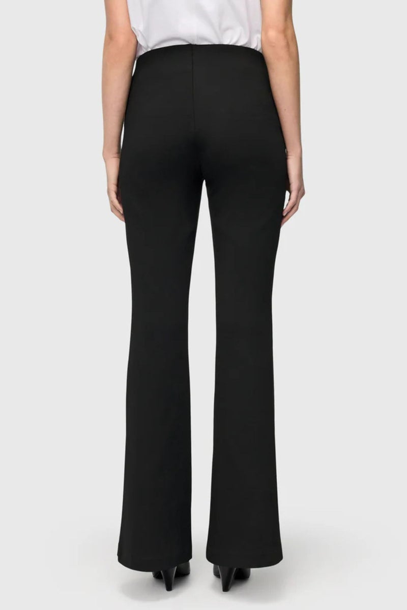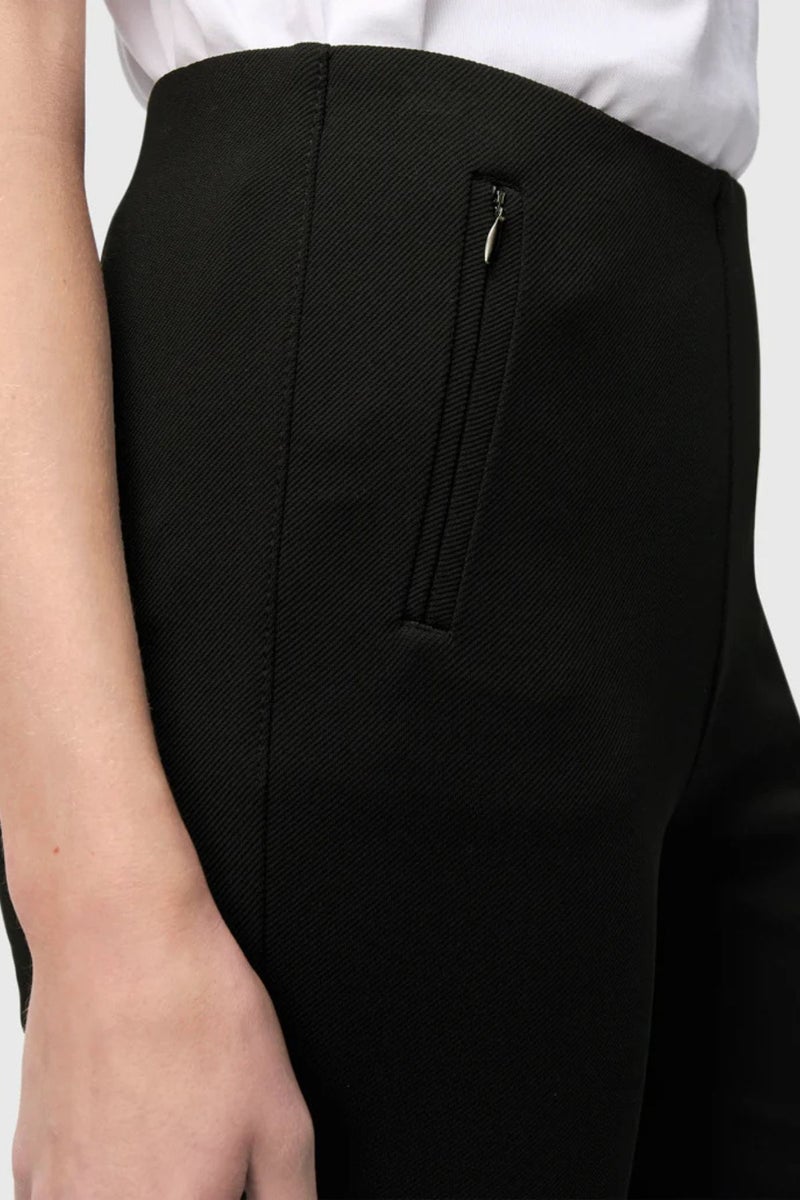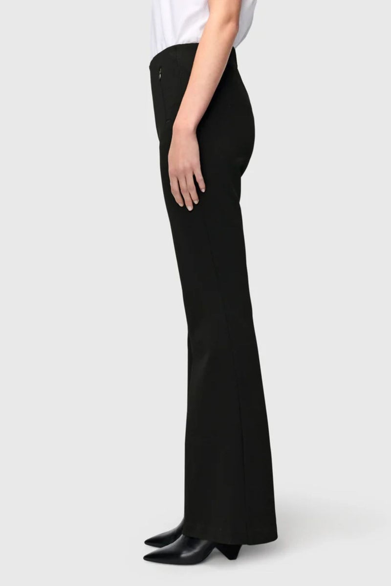 Housujen suorat ja alaspäin levenevät lahkeet tuovat ryhtiä ja pituutta olemukseen. Keskikorkea vyötärö ja jump-in -malli takaavat ensiluokkaisen käyttömukavuuden. Edessä olevat vetoketjulliset sivutaskut lisäävät housujen sporttisen eleganttia ilmettä.