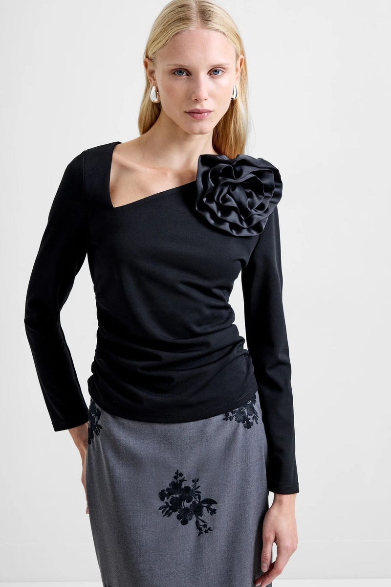 French Connection Valetta Rosette Top musta