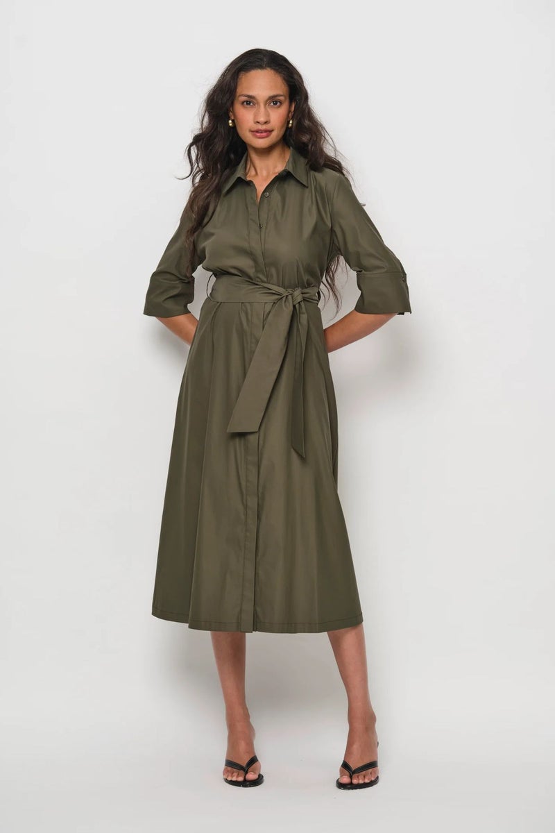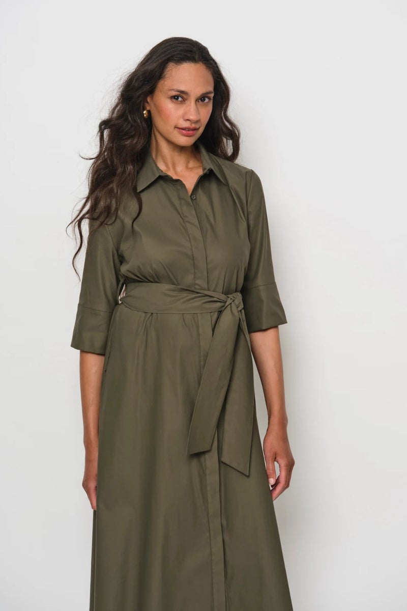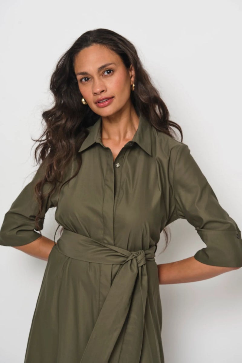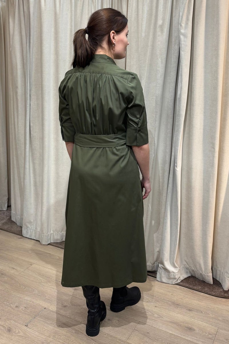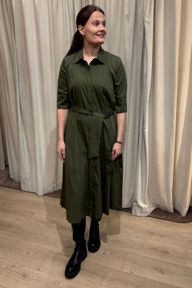 LaSalle paitamekko on ajaton ja huoliteltu valinta niin arkeen kuin viimeisteltyihin tilaisuuksiin. Tummanvihreä paitamekko on valmistettu upean ohuesta, joustavasta ja helppohoitoisesta puuvillasekoitteesta, joka tuntuu miellyttävältä päällä ja säilyttää ryhtinsä koko päivän.