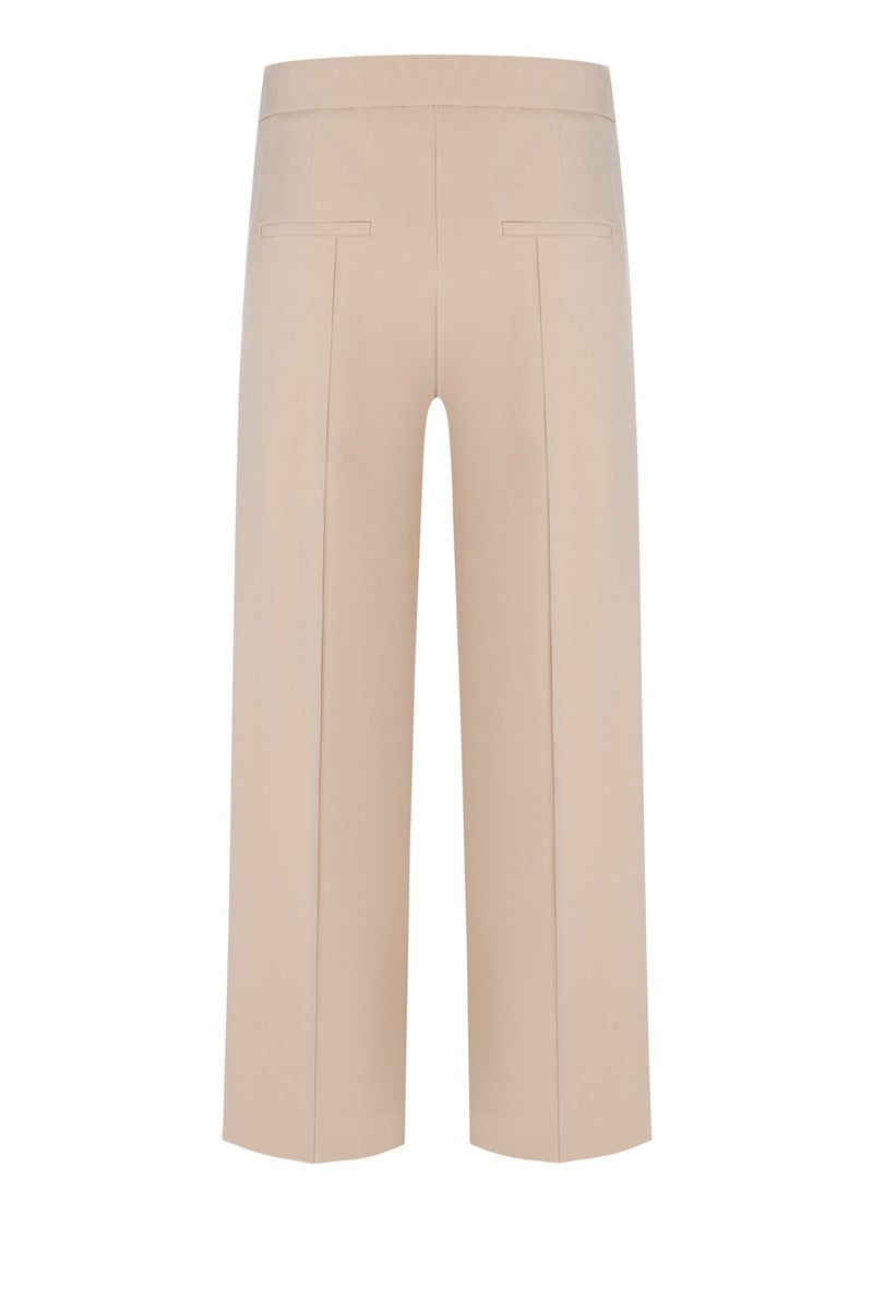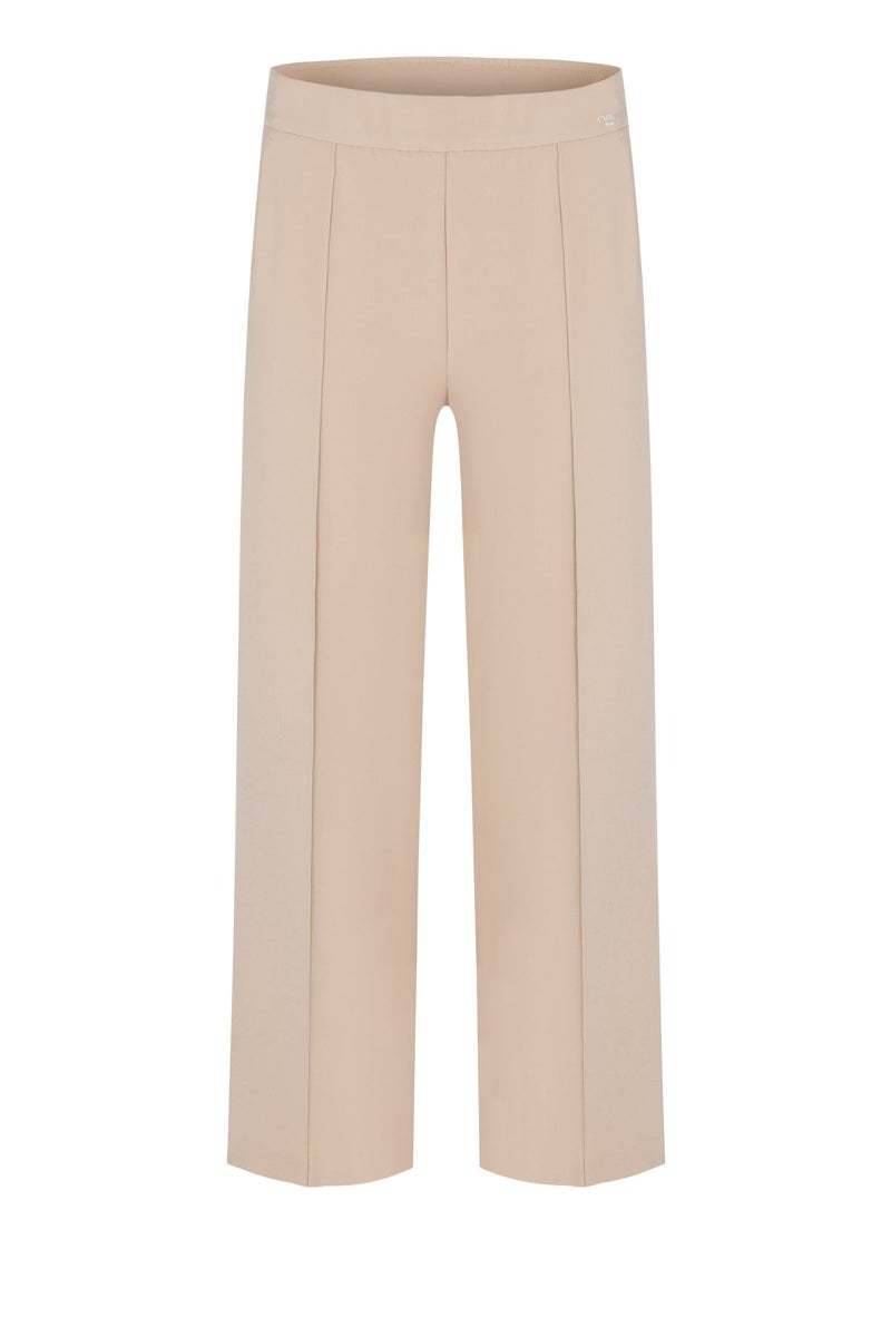 Mukava kuminauhavyötärö takaa täydellisen istuvuuden, kun taas levenevät vajaamittaiset lahkeet tuovat modernia ilmettä ja imartelevat jokaista vartalotyyppiä. Tyylikkäät prässit edessä ja takana viimeistelevät lookin ja tekevät näistä housuista helpon valinnan niin arkeen kuin juhlaan.