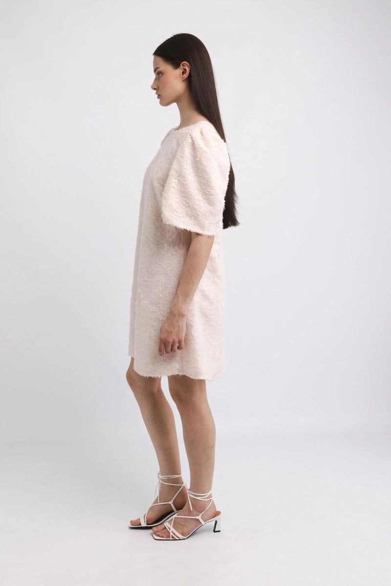 KATRI NISKANEN May Paillette Dress on juhlakauden katseenvangitsija, jossa leikkisyys kohtaa harkitun eleganssin. Mekko on valmistettu strukturoidusta paljettivoilé-kankaasta, joka tuo ilmeeseen kevyttä kimallusta. Mekossa on pyöreä pääntie, ilmavat ja vajaamittaiset hihat sekä puuvilla–silkkisekoitteinen vuori.