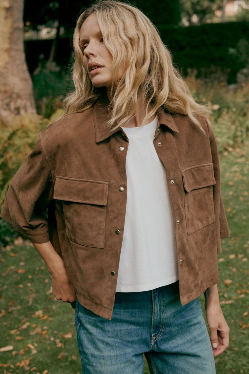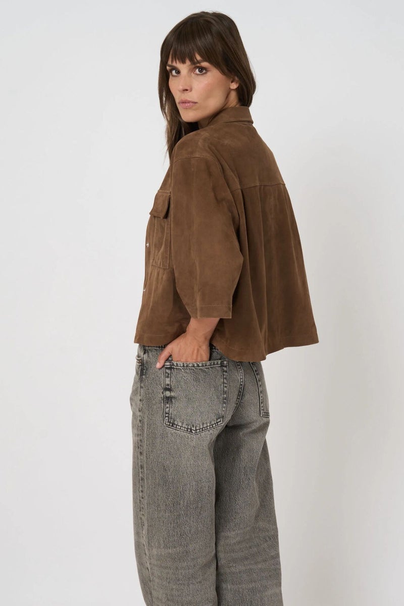 Repeatin paitahenkinen pusakka on valmistettu laadukkaasta mokkanahasta, mikä tuo asuun hienostuneen, mutta rennon ilmeen. Laatikkomallinen ja suoralinjainen leikkaus tekee siluetista modernin ja helposti yhdisteltävän.