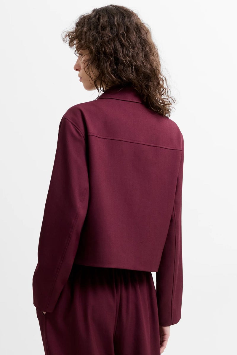 French Connection Twyla Suiting Structured Hem Jacket berry red