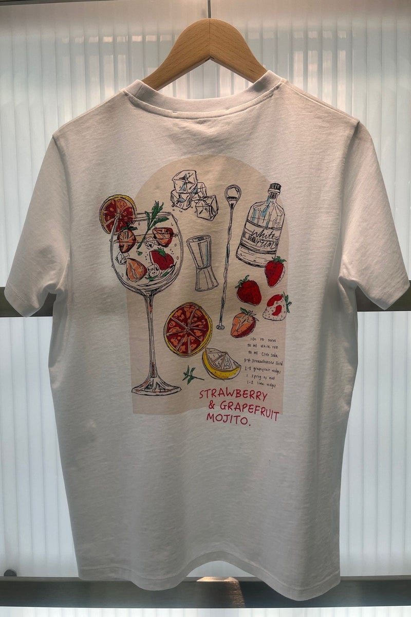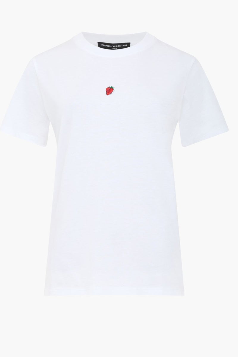 French Connection Graphic Cocktail T-shirt tuo asuun ripauksen huumoria. Klassisessa valkoisessa t-paidassa on edessä pieni mansikkaprintti ja takana hauska mojito-aiheinen kuviointi. Laadukas puuvilla tuntuu miellyttävältä päällä ja sopii täydellisesti rentoon vapaa-ajan tyyliin.