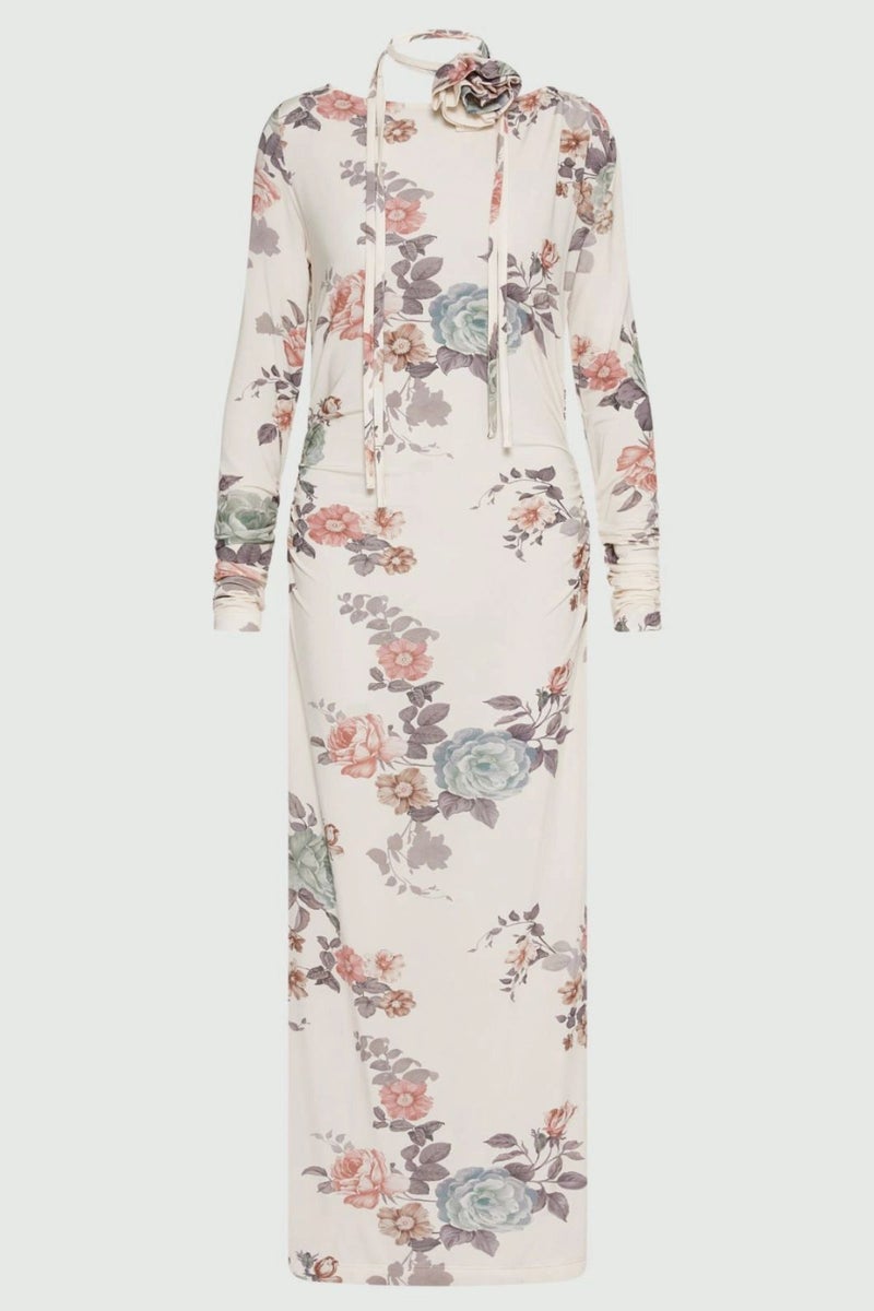 Mekon mukana tuleeva irrotettava vyö kukkakoristeella antaa mahdollisuuden muokata tyyliä tilanteen mukaan. Voit solmia vyön rennosti kaulalle tai korostaa sillä vyötäröä.