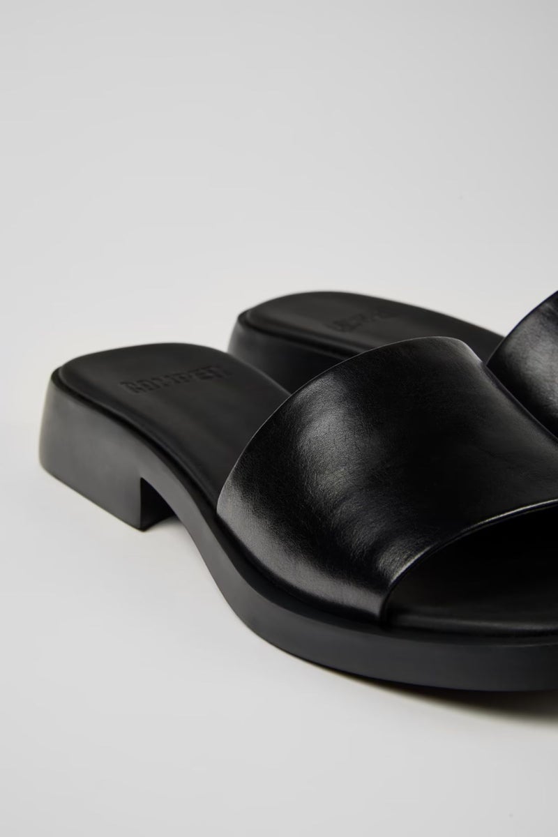 Camper Dana nahkasandaalit ovat täydellinen valinta arkeen. Ajaton musta sävy ja selkeälinjainen muotoilu tekevät sandaaleista helposti yhdisteltävän vaihtoehdon niin rentoihin kuin huolitellumpiinkin asuihin. Kevyt mutta kestävä ulkopohja tuo askellukseen joustavuutta ja tekee kengistä miellyttävät käyttää koko päivän ajan.