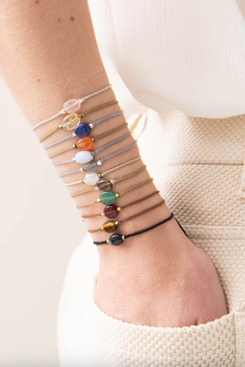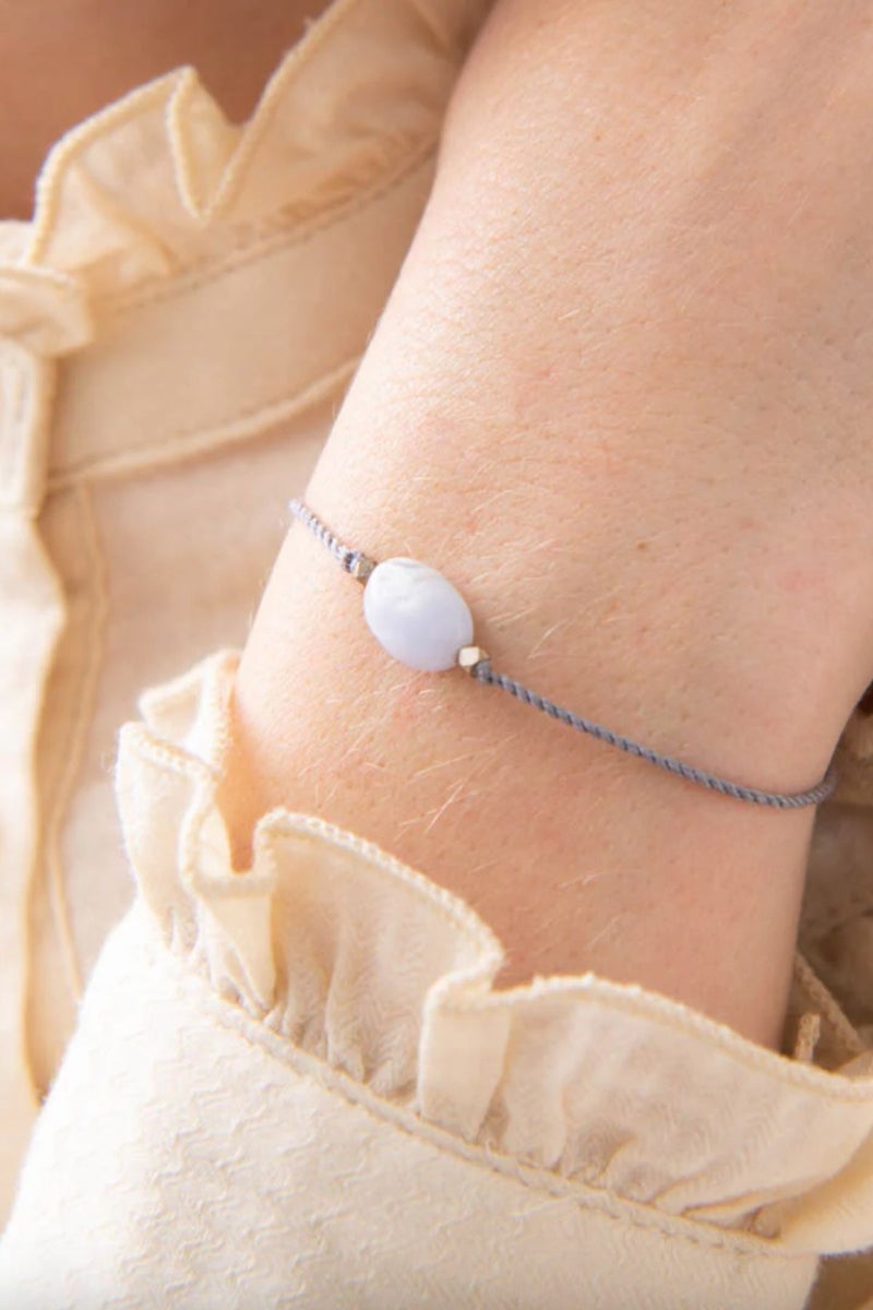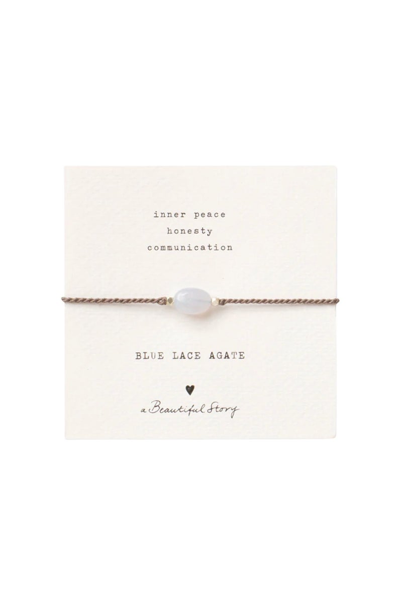 Ilahduta itseäsi tai ystävääsi A Beautiful Storyn rannekorulla. Koru on valmistettu puuvillalangasta ja siinä on sininen pitsiakaatti. Sininen pitsiakaattikivi auttaa sinua vapautumaan stressistä ja löytämään oman, sisäisen rauhan.