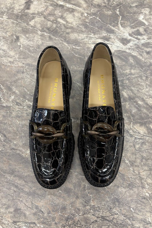 Italialaisen Brunaten Hellen loaferit on valmistettu tyylikkäästä kiiltonahasta ja niissä on upeat ketjuyksityiskohdat.