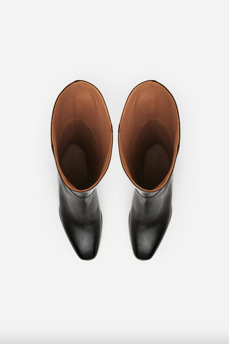 Flatteredin Colette nahkasaappaat ovat tyylikäs pari mekoille ja hameille. Nahkasaappaiden viimeistelty siluetti ja yksityiskohdat sekä laadukkaat materiaalit luovat kengille ylellisen tunteen. Matala korko, vetoketjukiinnitys sekä kumipohjat tekevät saappaista käytännölliset ja mukavat, jonka ansiosta ne ovat taatusti luottokenkäsi pitkään.