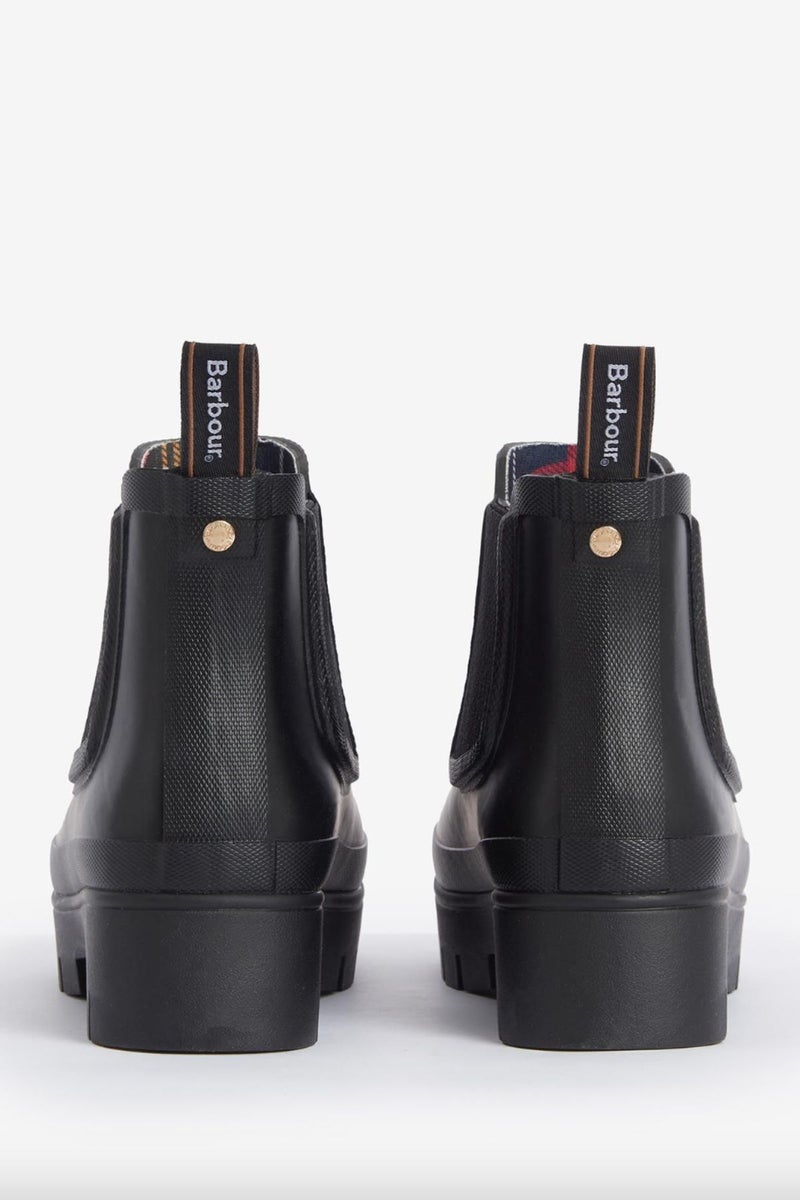 Barbourin nilkkapituiset kumisaappaat ovat täydellinen kumppani niin syksyn sadekeleihin kuin kevään sulaviin lumikinoksiin. Kumisaappaissa on chelsea-tyylinen muotoilu, joustavat sivuresorit ja kätevät vetolenkit. Paksu uritettu pohja tuo askeleeseen varmuutta liukkaallakin säällä.