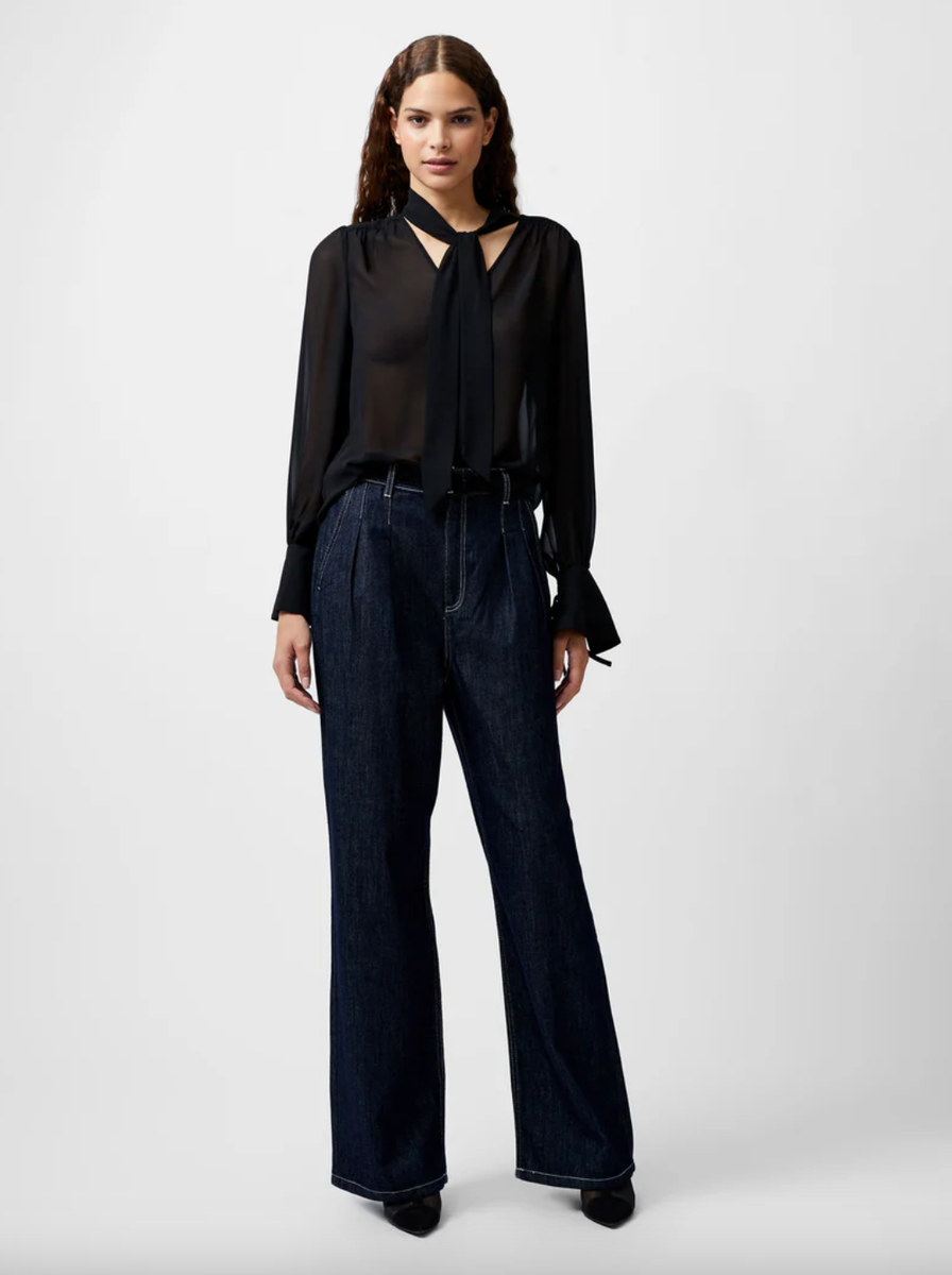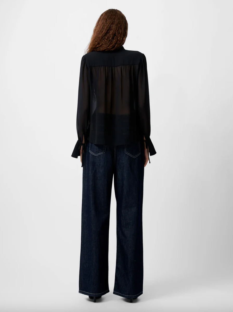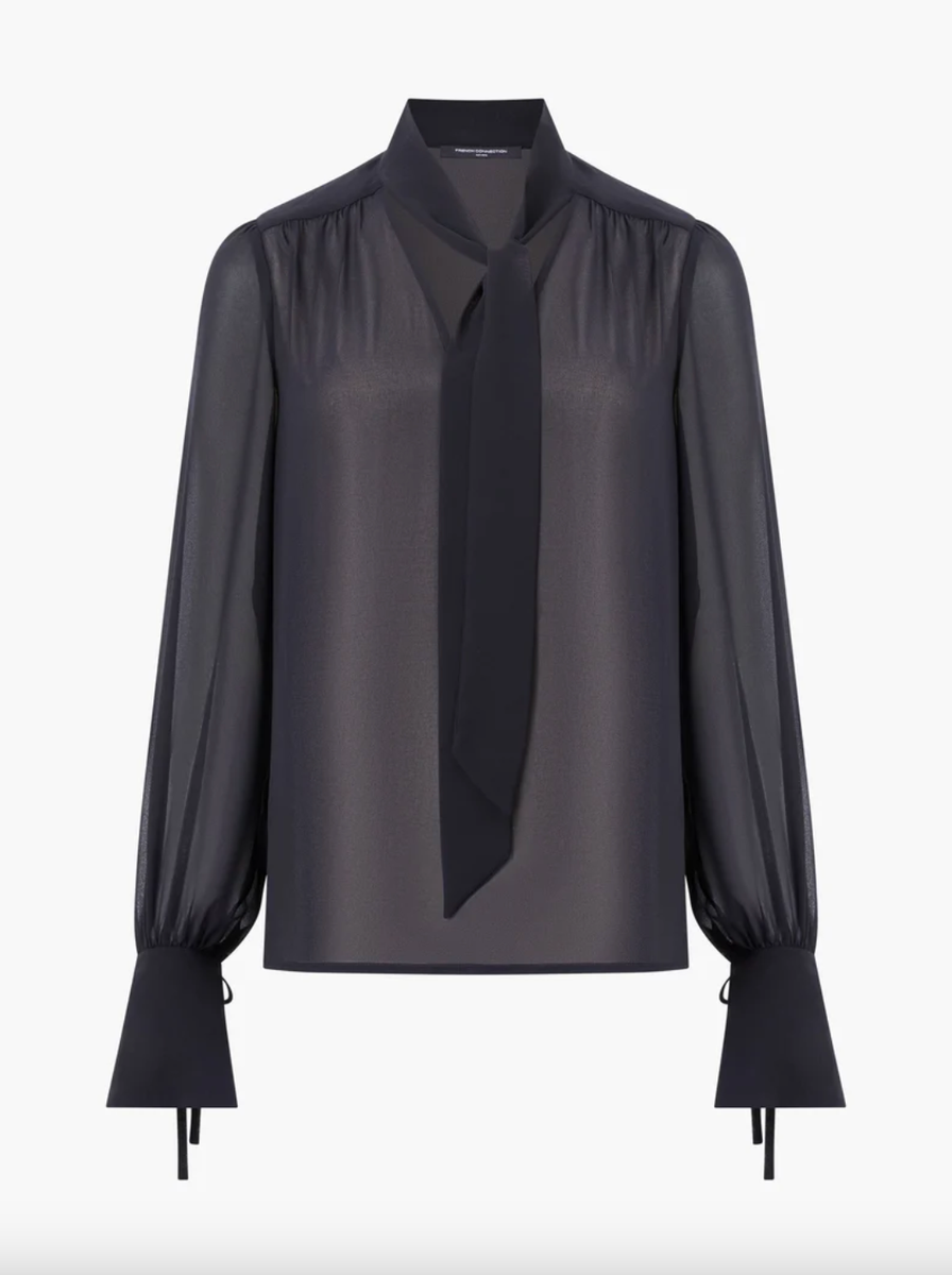 French Connection Eden Georgette Tie Neck Blouse black