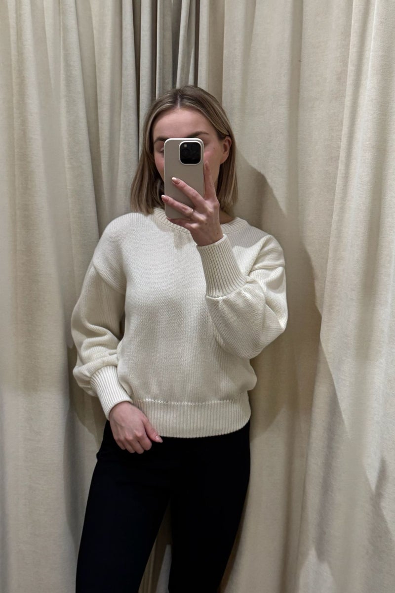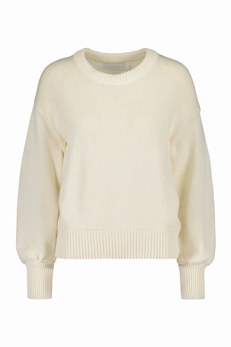 Gauharin luonnonvalkoinen puuvillaneule on täydellinen yhdistelmä skandinaavista tyylikkyyttä ja käytännöllisyyttä. Kotimaisen Gauharin suunnittelema ja Suomessa valmistettu neule on valmistettu 100% puuvillasta – täydellinen luottovaate arkeen.
