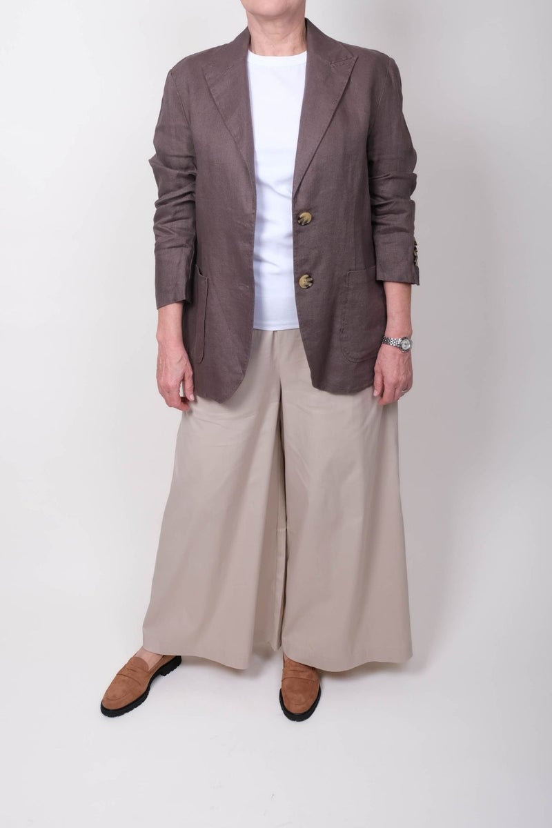 SAND Copenhagen Okale pellavajakku on täydellinen yhdistelmä tyylikkyyttä ja rentoutta. Ruskean pellavajakun muotoilu on saanut inspiraationsa miesten pikkutakista, johon rento pellavakangas antaa keveyttä.