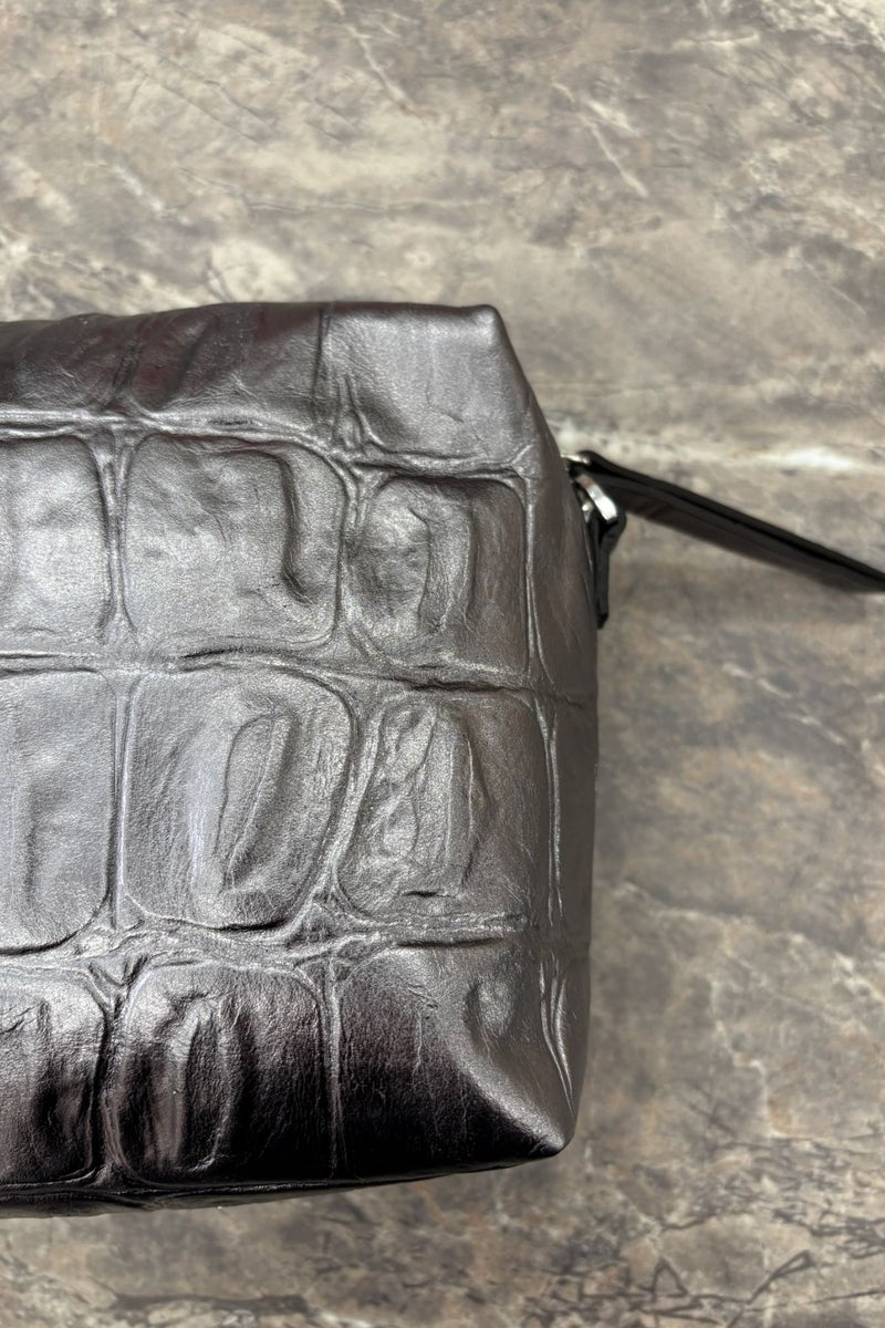 Abro Kaia Coccobello olkalaukku on valmistettu antrasiitin värisestä, metallinhohtoisesta nahasta, joka sopii niin juhlan säihkeeseen kuin arjen piristykseksi.